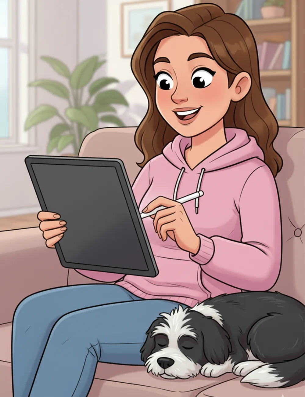 Jedes hochgeladene Bild wird automatisch in eine liebevoll gestaltete Zeichnung verwandelt – für ein Buch, das aussieht wie für euch gemalt.